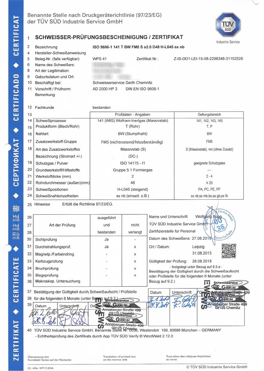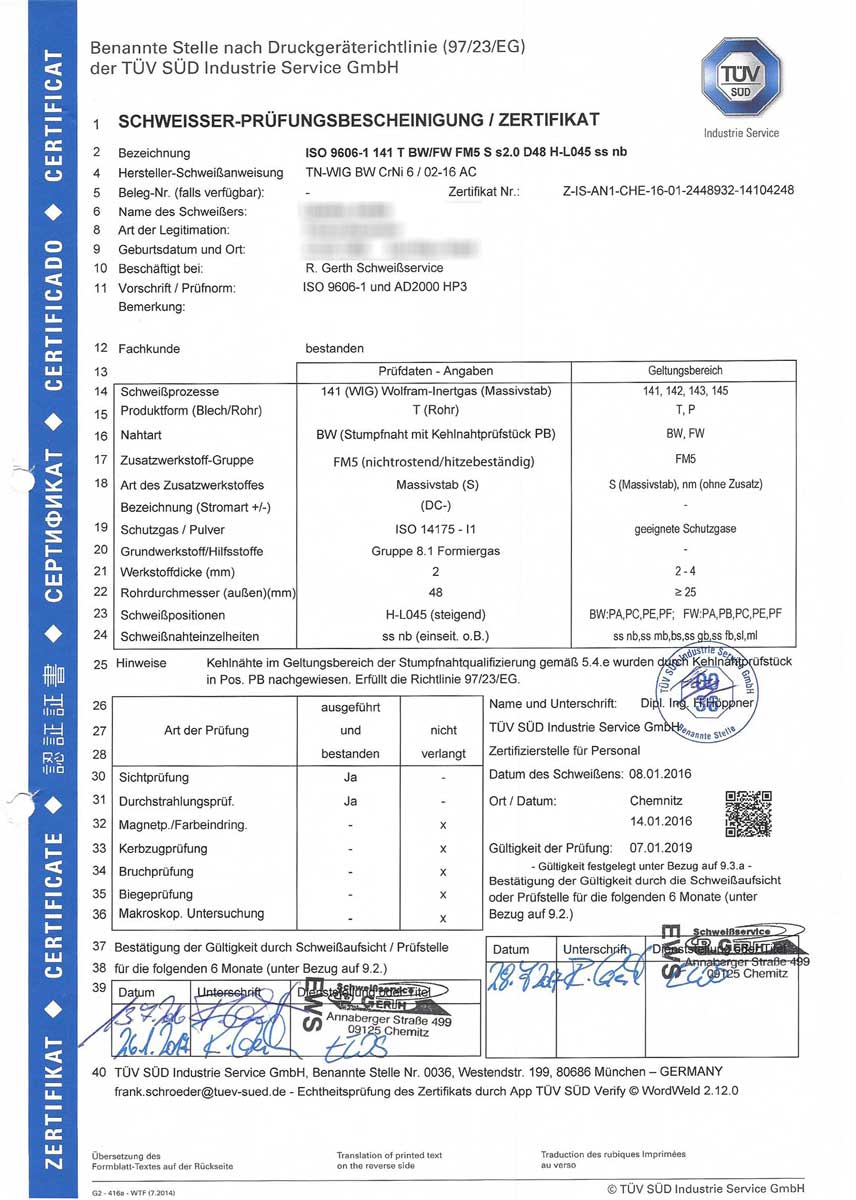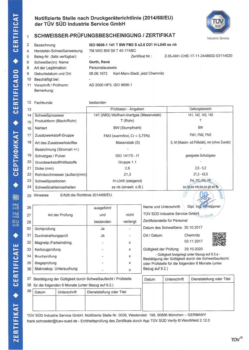 Unser Unternehmen wurde im Februar 2001 gegründet. Seither arbeite ich mit meinen qualifizierten Mitarbeitern auf Großbaustellen und in Betrieben. Hauptaufgabengebiet ist überwiegend die Montage und das Verschweißen von Rohrleitungen aus Stahl und V4A bis hin zur kompletten Montage einer Dampf- oder Heizungsanlage. Im Trinwasserbereich verarbeiten wir V2A ebenfalls mit gültigen Eignungsnachweisen. Für unsere Privatkunden fertigen wir Geländer und Tore in Edelstahl oder feuerverzinkt.